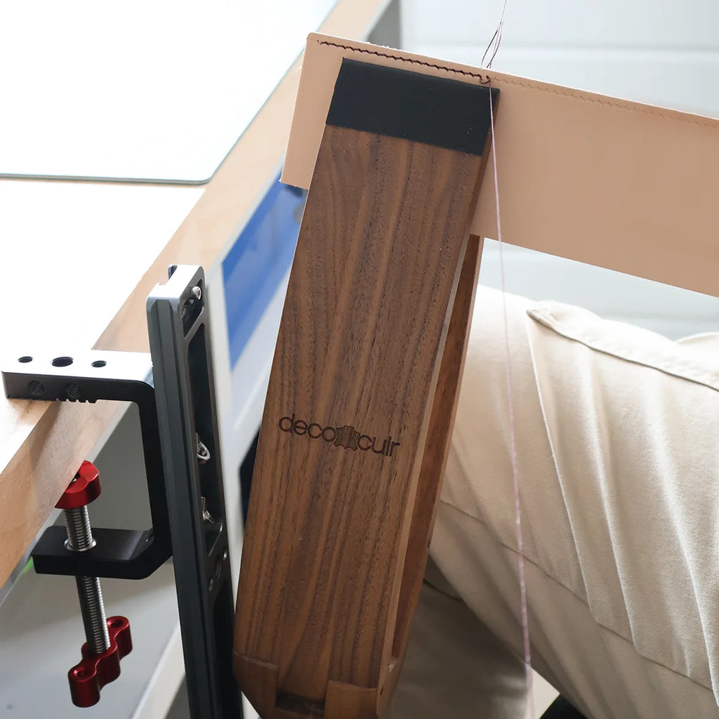 Achieve precise and comfortable saddle stitching and leatherwork with this professional sewing valet from Deco Cuir. The walnut wood clamp securely holds your leather pieces, freeing up both hands for efficient work. Thanks to its multiple adjustments , this sewing valet adapts perfectly to your working position, whether you're standing, sitting in a chair, or on a high stool.