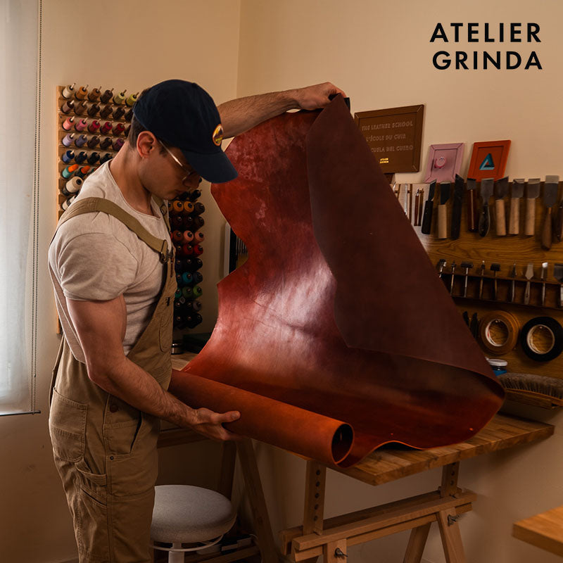 « Aujourd'hui, je suis un maroquinier professionnel : je fabrique des articles en cuir sur-mesure pour des clients du monde entier et j'aide les artisans maroquiniers de tous niveaux dans leur parcours d'apprentissage ». Nicolas Grinda