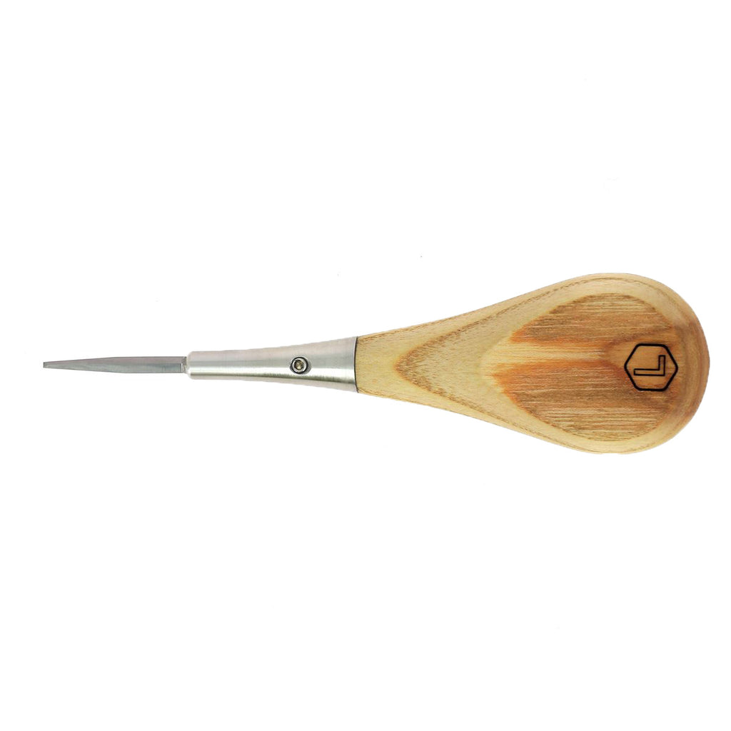 Cette alêne de haute précision est un outil incontournable pour les artisans selliers. Son manche en bois de frêne olivier, tourné à la main par un artisan breton, est conçu pour offrir une prise en main naturelle et équilibrée.