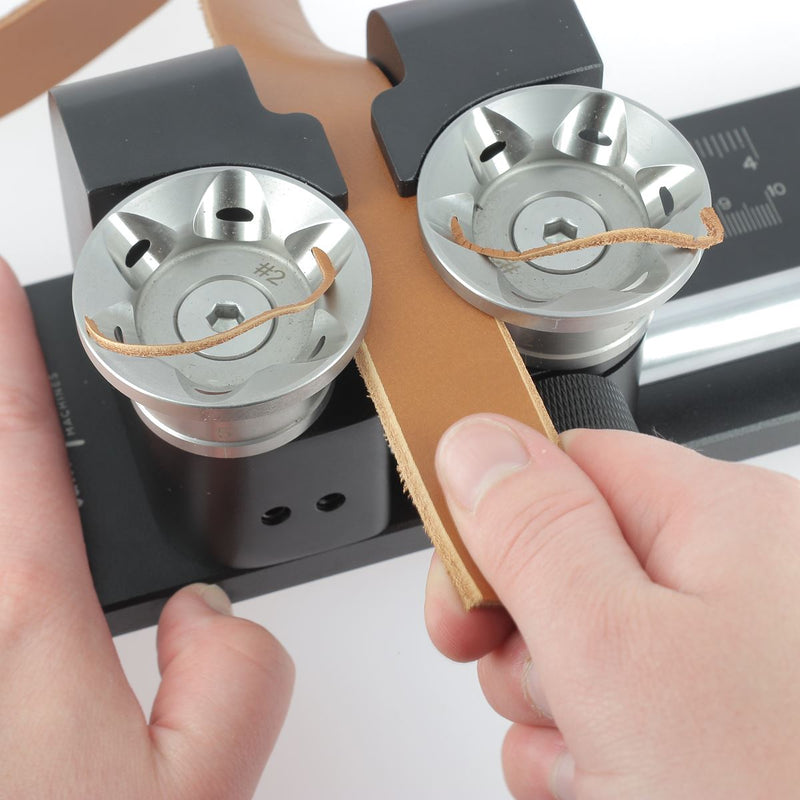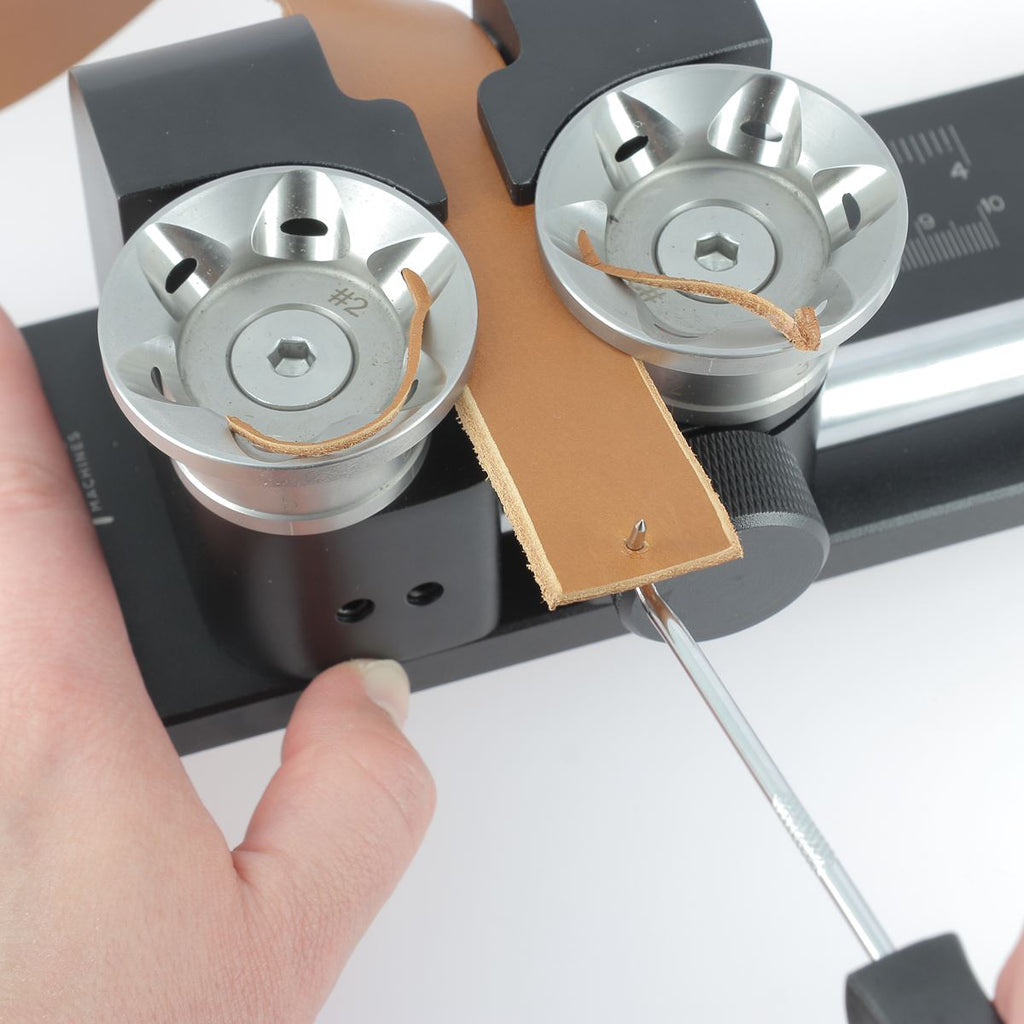 Les 2 lames fournies avec la machine sont des lames taille #2, elles conviennent pour une épaisseur de cuir de 3,2 à 4 mm (8 à 10 oz).