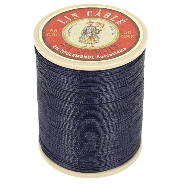 Ce fil de lin est glacé ce qui signifie qu'il est passé dans un bain d'amidon dans lequel a été ajouté de la cire d'abeille. Il a ensuite subi un brossage au crin de cheval et un étirage. Ces opérations donnent un fil lisse et résistant qui a de la rigidité, un bon glissé pour faciliter la couture et de la tenue.