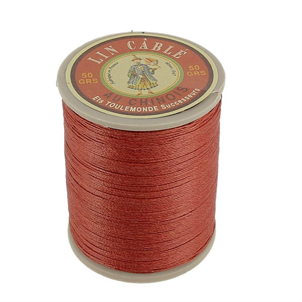 Ce fil de lin est glacé ce qui signifie qu'il est passé dans un bain d'amidon dans lequel a été ajouté de la cire d'abeille. Il a ensuite subi un brossage au crin de cheval et un étirage. Ces opérations donnent un fil lisse et résistant qui a de la rigidité, un bon glissé pour faciliter la couture et de la tenue.