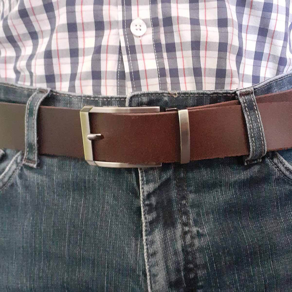 Boucle de ceinture à griffe avec passant pour lanière en cuir de 35 mm de largeur et de 4 mm d'épaisseur maximum.