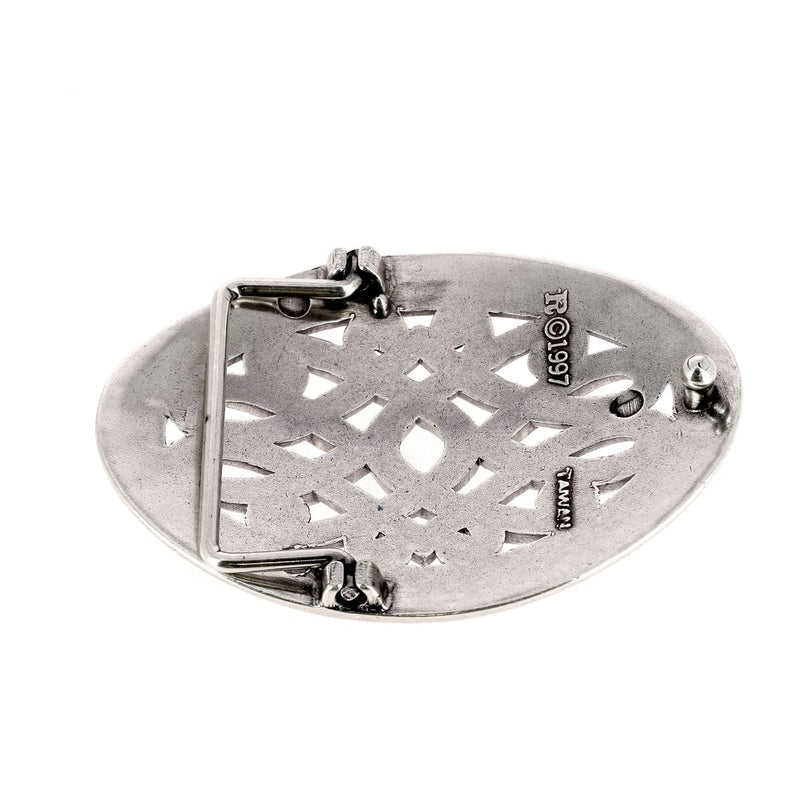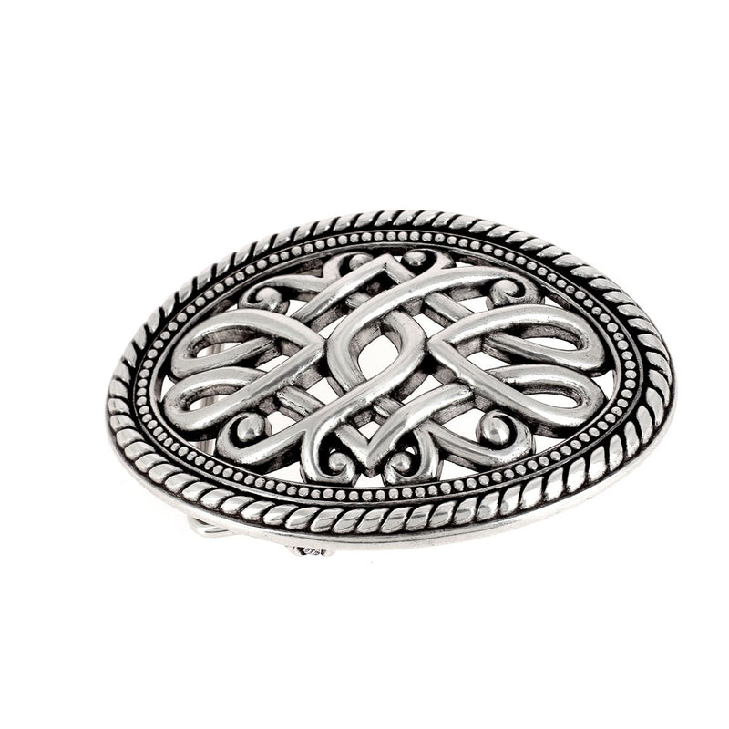 Cette boucle de ceinturon, au style unique, mettra en valeur votre ceinture en cuir. Les motifs sont ajourés à l'intérieur et le contour imite un tressage.