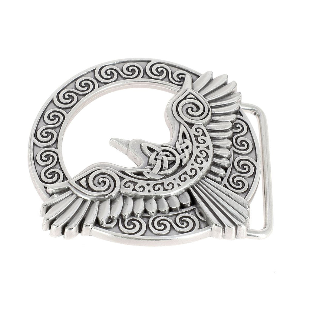 Sublimez votre style avec cette boucle de ceinture ronde ornée d'un oiseau en plein envol.