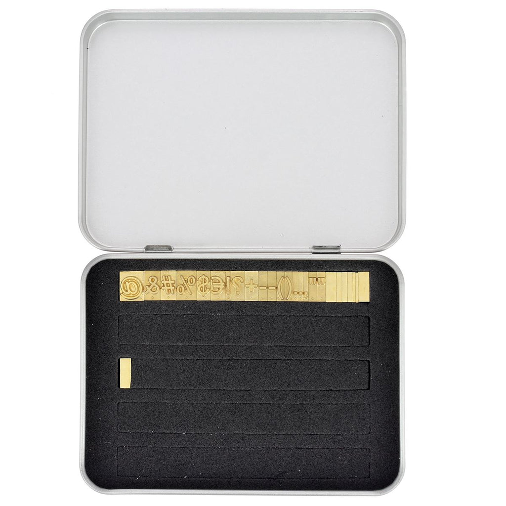 Ils sont fournis dans une boîte en métal pratique, qui permet de ranger tous vos caractères en laiton, y compris ceux achetés séparément à l’unité.