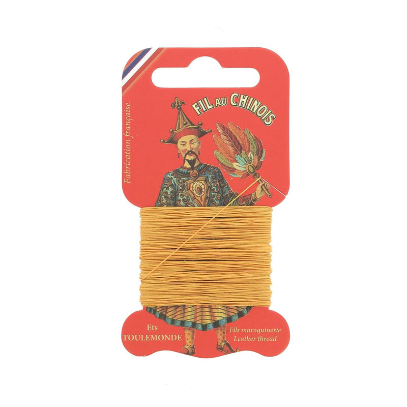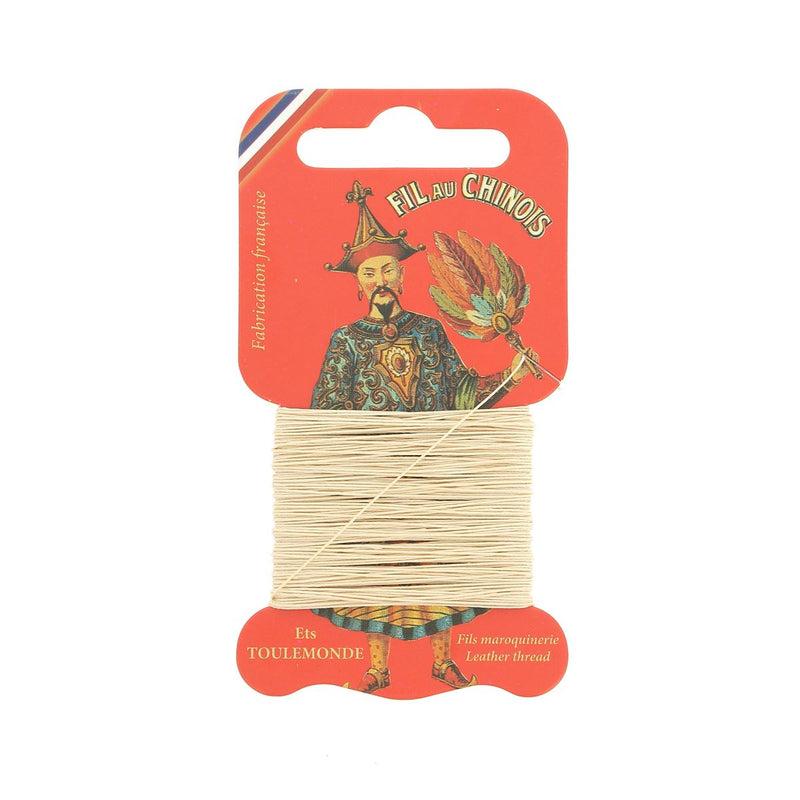 Ce fil de lin est glacé ce qui signifie qu'il est passé dans un bain d'amidon dans lequel a été ajouté de la cire d'abeille. Il a ensuite subi un brossage au crin de cheval et un étirage. Ces opérations donnent un fil lisse et résistant qui a de la rigidité, un bon glissé pour faciliter la couture et de la tenue.