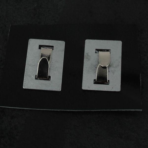 Pour la pose du fermoir : il vous suffit de faire quatre encoches droites de quelques millimètres pour insérer les pattes du cavalier, placer les plaques et écarter les pattes du cavalier (comme pour une attache parisienne) pour maintenir le cuir.