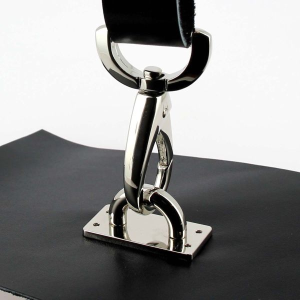Ce cavalier (également appelé pontet) avec anneau demi-rond se fixe sur votre sac pour attacher une anse ou une lanière en cuir.