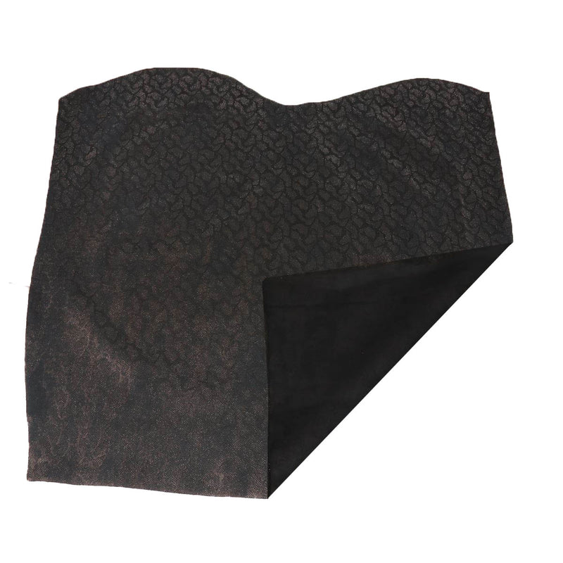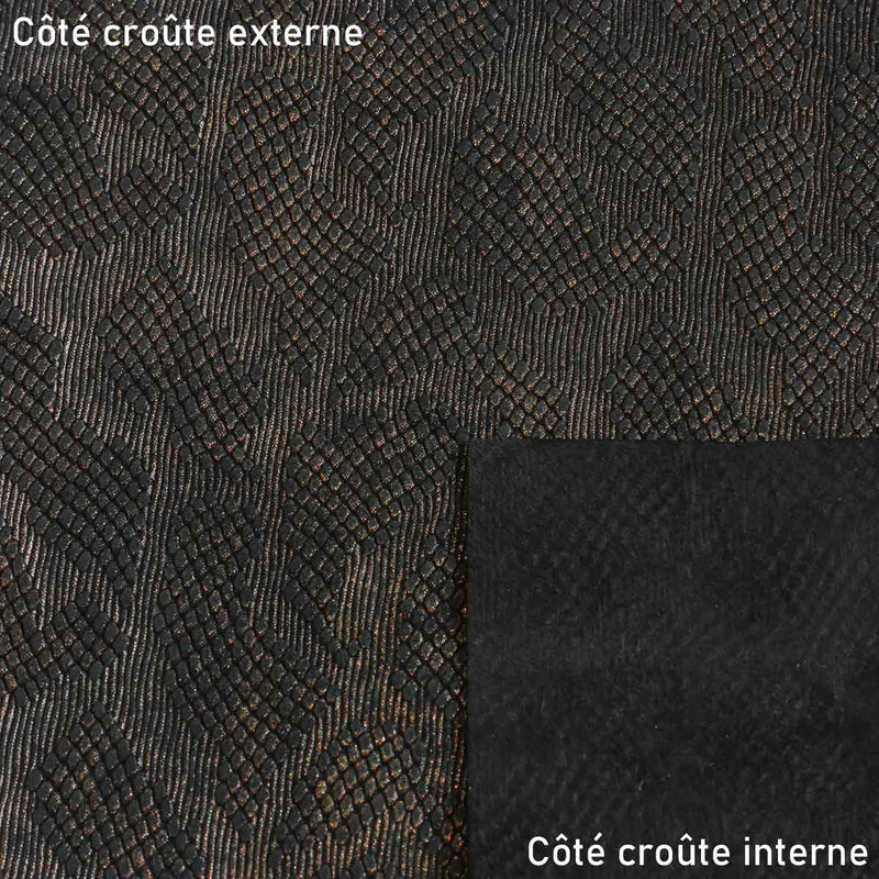 L'imitation reptile de cette croûte de cuir velours a été réalisée en 3D, ce qui la rend très originale. Sa finition métallisée donne à cette croûte de cuir un style festif.