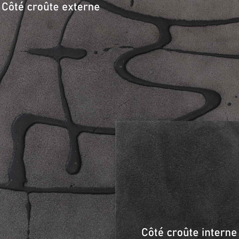 Couleur : gris avec un décor fantaisie en relief noir mat réalisé par la technique d'enduction PU.
