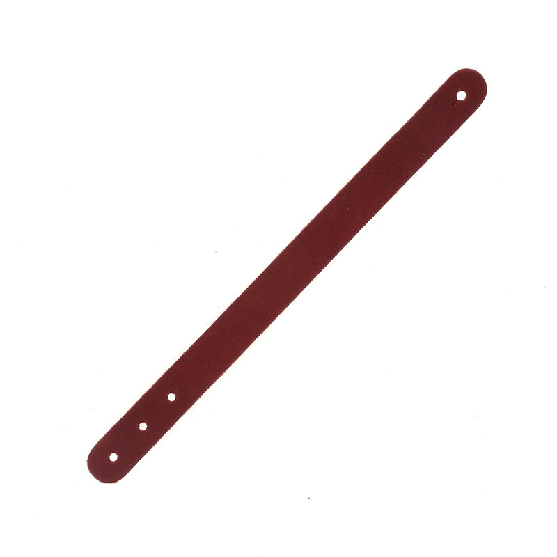 Créez et personnalisez votre bracelet en cuir tannage végétal teinté.Découpé dans du cuir de croupon tannage végétal, vous pourrez très facilement le personnaliser à l'aide d’œillets, de mini-conchos, de rivets ou des matoirs à frapper comme les lettres. Il s’agit d’un cuir fini, c'est-à-dire que vous ne pourrez pas faire du repoussage. Idéal pour divertir vos enfants, même les plus grands.