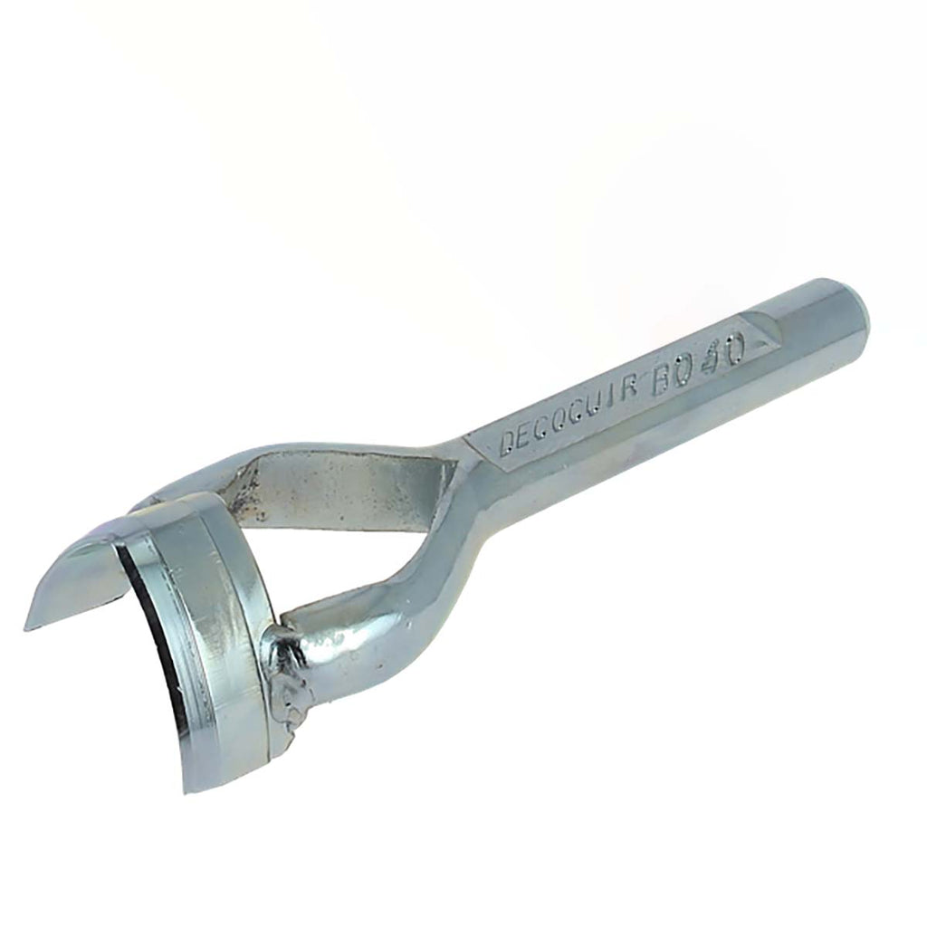 Emporte-pièce à frapper à bout en forme d'ogive de la marque Deco Cuir. Cet outil va vous permettre de couper le bout des ceintures et autres lanières en cuir en forme d'ogive. Lame en acier haute résistance pouvant être affûtée, si besoin.