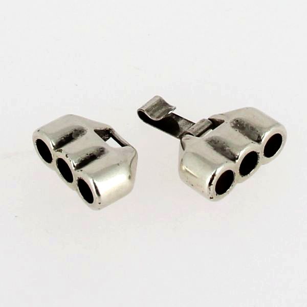 Fermoir bijou - Fermeture clip - Argent vieilli - 3 lacets ronds 5 mm