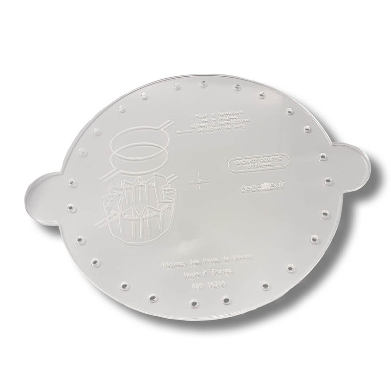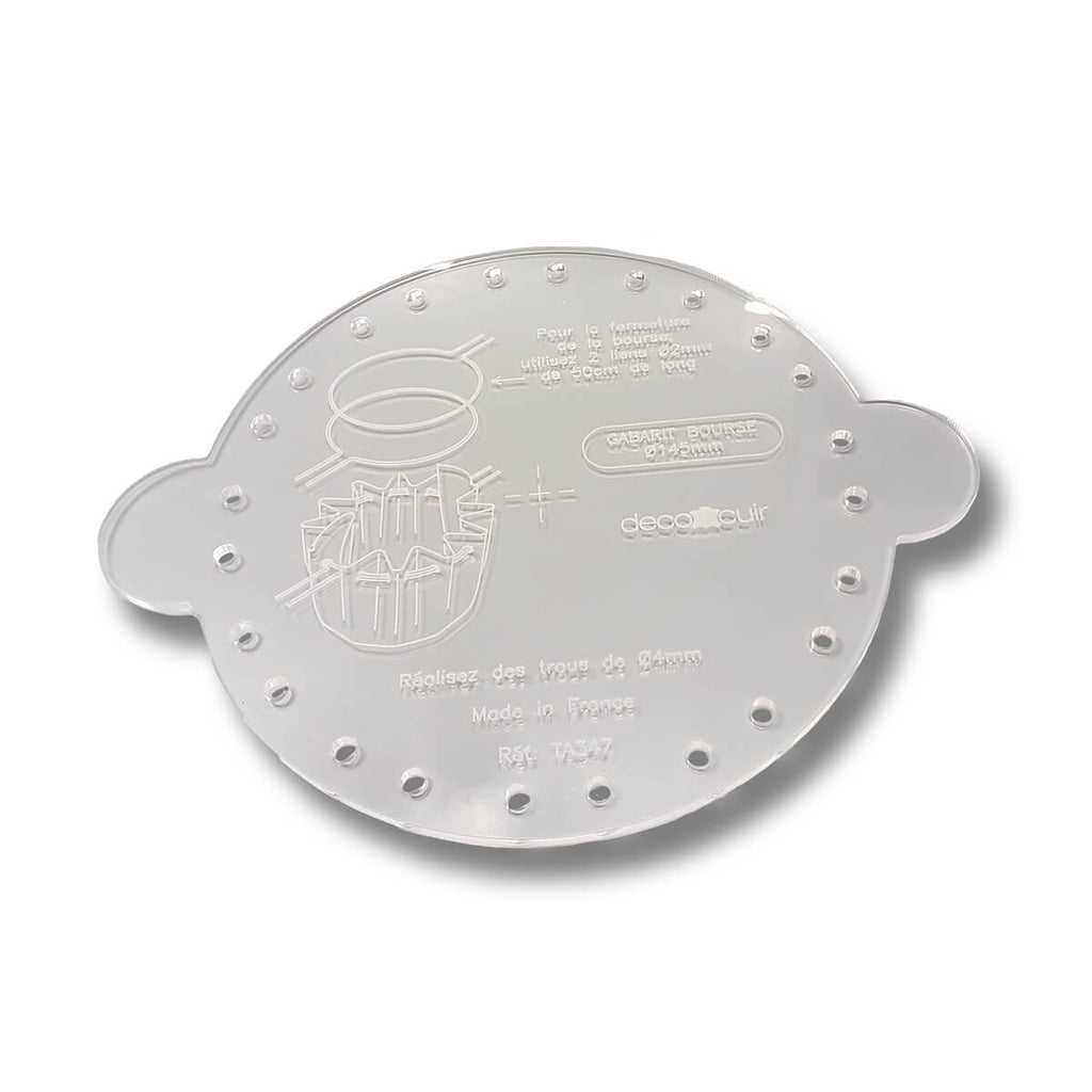 Deco Cuir vous propose son gabarit en plexiglas qui vous permettra de réaliser facilement et rapidement vos découpes de bourses