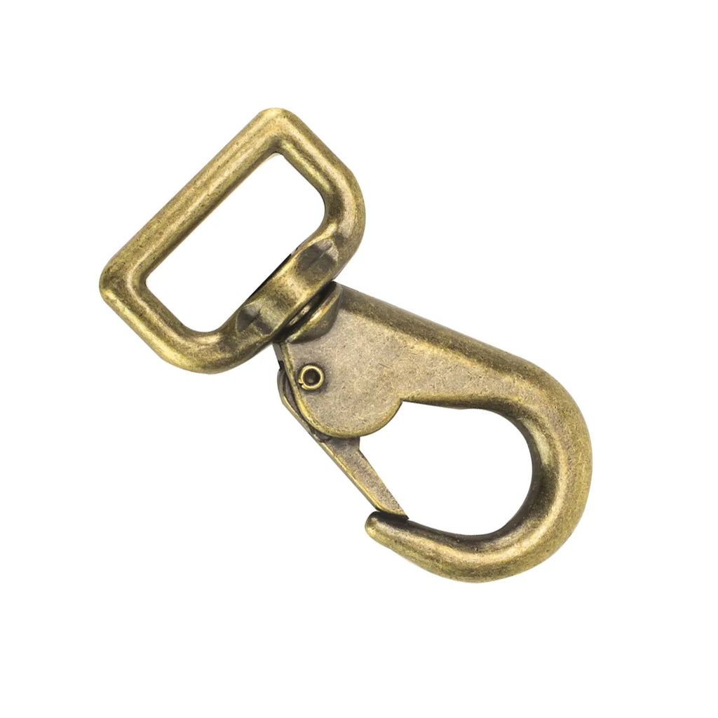 Ce mousqueton très qualitatif a une bélière plate rotative pour éviter à la sangle ou à la lanière en cuir de se tordre.