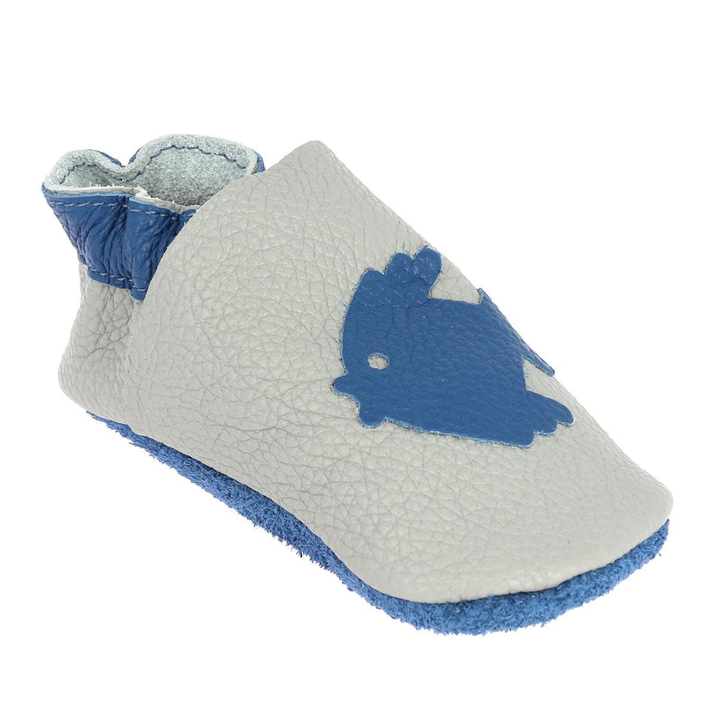 Kit chaussons en cuir pour bébé avec Poisson - Gris souris & Bleu océan -Taille 15-16 (0-3 mois)