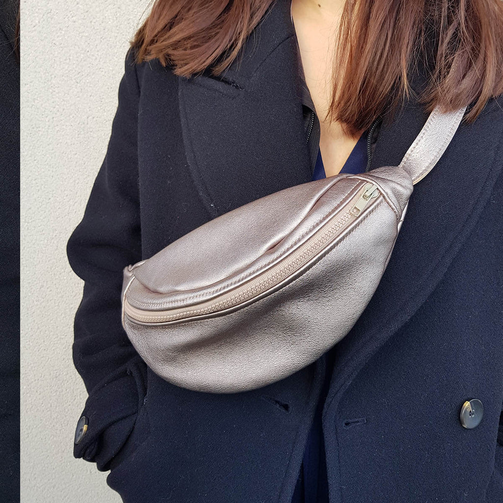 Kit do it yourself pour réaliser un sac banane en cuir. Patron à taille réelle et tutoriel inclus.