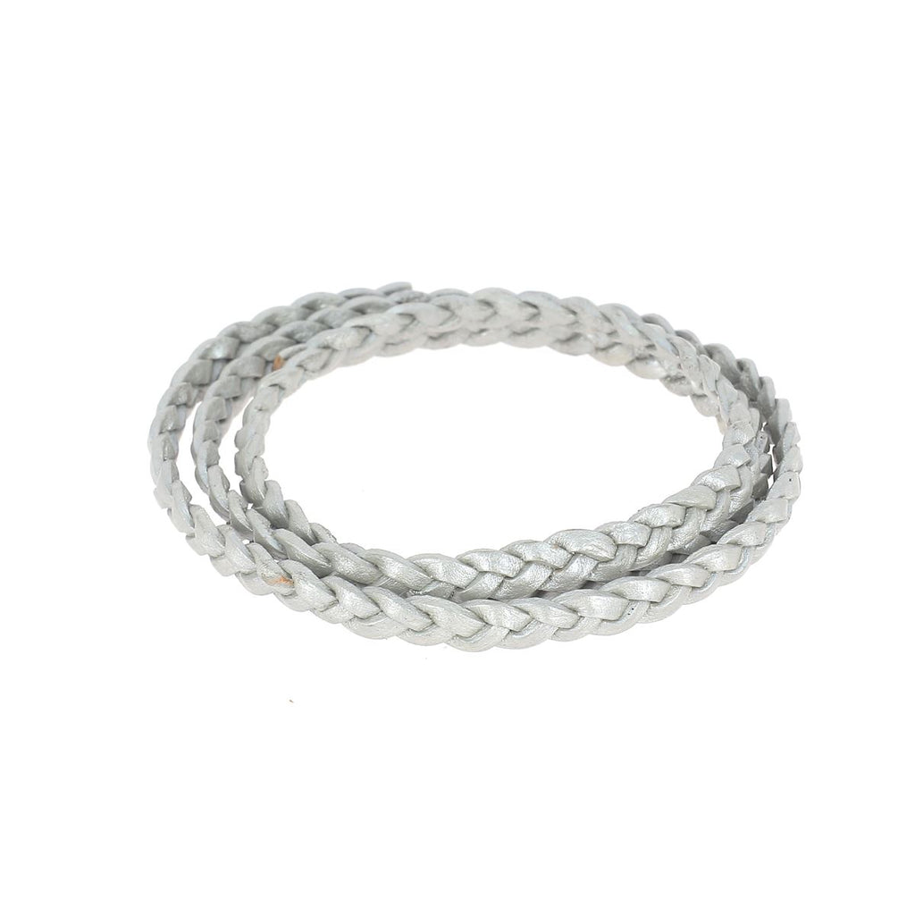 CORDON EN CUIR TRESSÉ - TANNAGE VÉGÉTAL - ARGENT