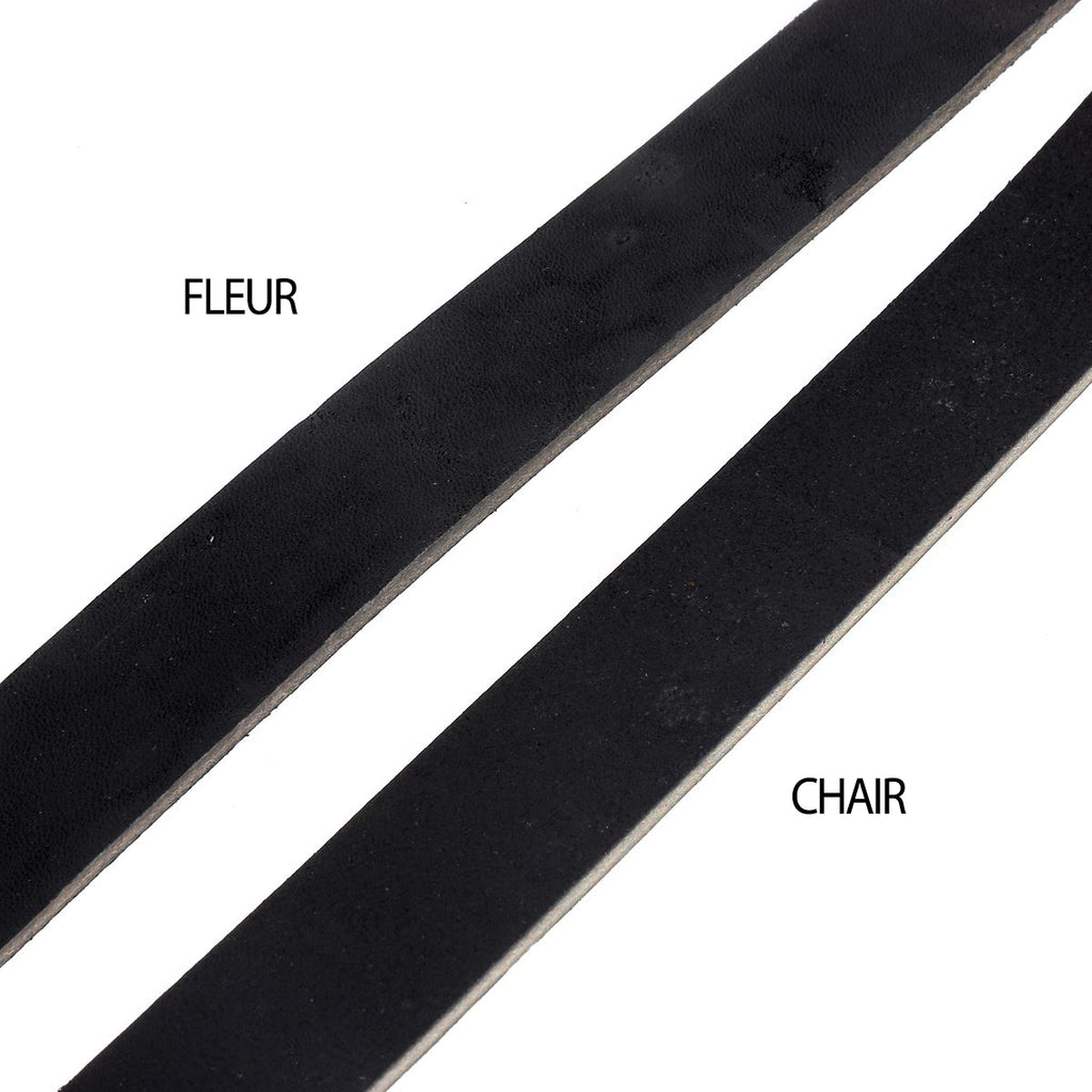 Cette lanière noire est réalisée en cuir de croupon BOYOMA pré-étiré de la tannerie Radermecker. Le cuir sellier Boyoma est un cuir pleine fleur non pressé, non corrigé, grain lisse et à double tannage (végétal retanné en minéral). Ce cuir robuste a une forte résistance à l'élongation ce qui le rend idéal pour la réalisation des étrivières et des contre-sanglons de selle de cheval. Ce cuir est nourri à cœur en bain de suif qui est un savoir-faire historique de la tannerie Radermecker.