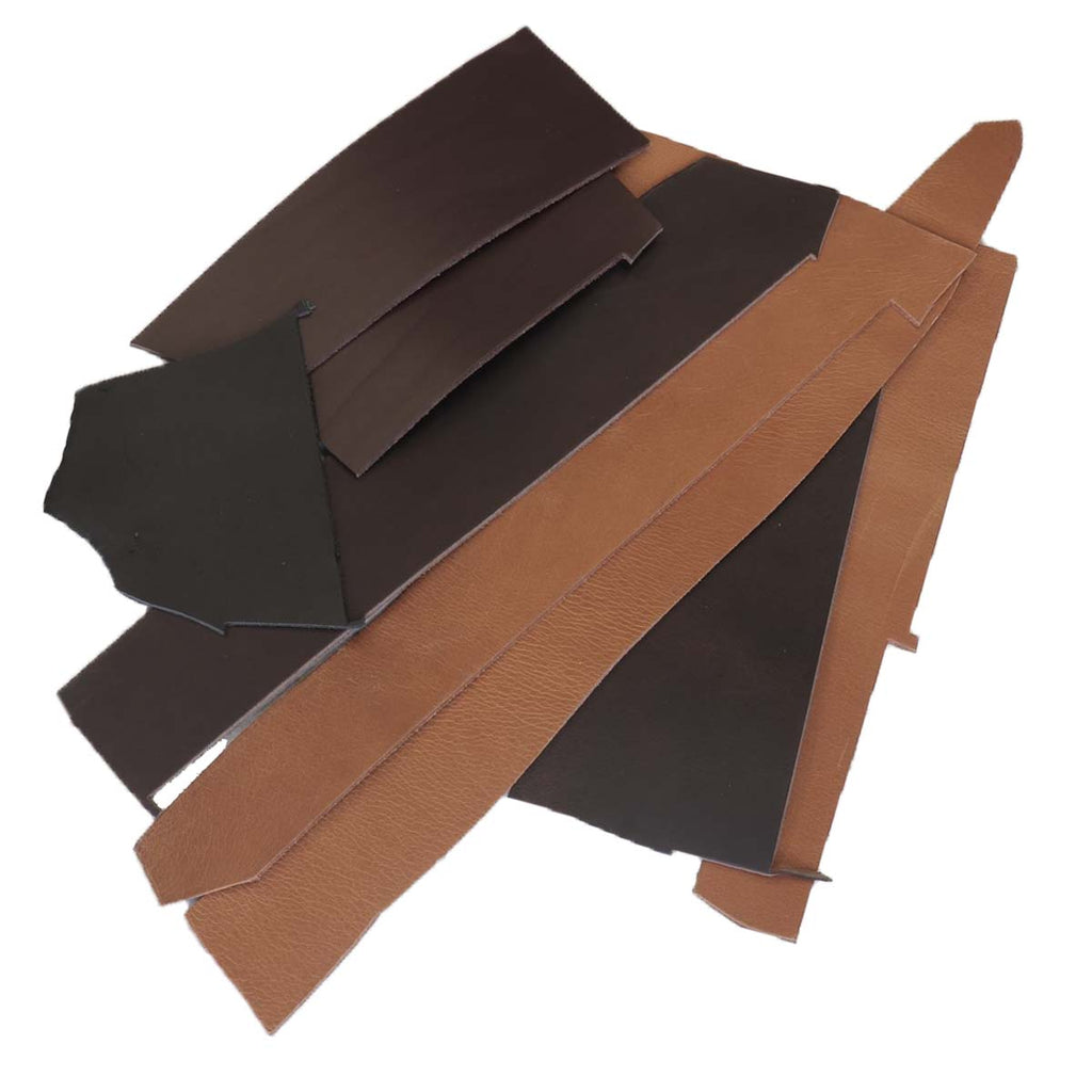 Lot de 500 g de chutes de cuir de collet ou croupon tannage végétal de couleurs diverses