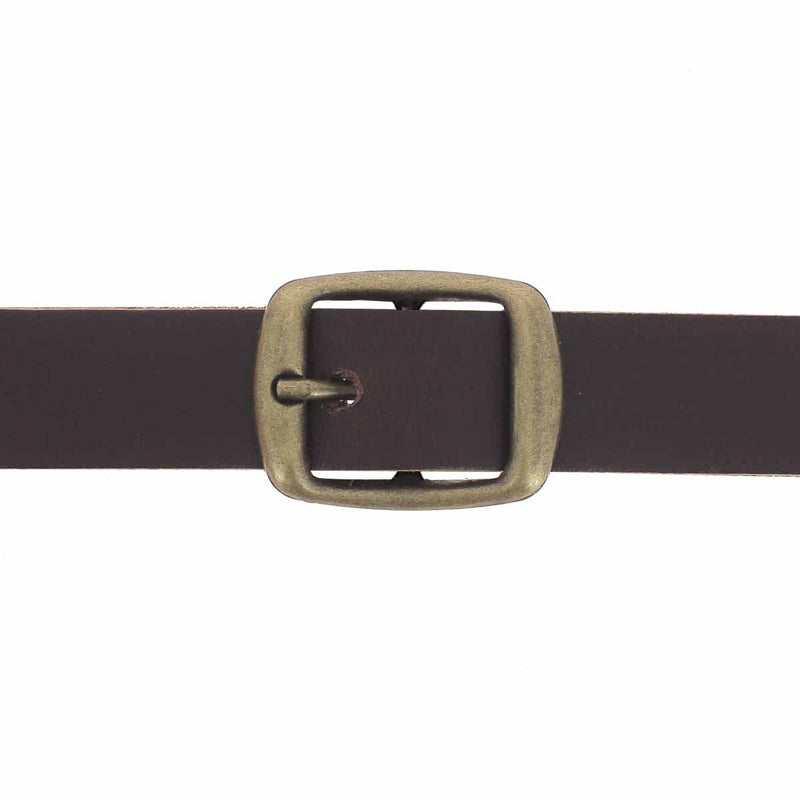 Petites boucles doubles à ardillon avec chape pour lanière en cuir.