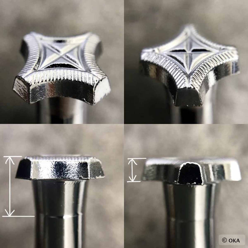 OKA est un fabricant Japonais passionné par le travail du cuir. Il fabrique des outils de haute qualité, agréables à utiliser et adaptés aux débutants comme aux confirmés.Les matoirs sur manche Géométriques permettent de créer des effets décoratifs. Ils sont utilisés pour reproduire rapidement et facilement le même motif sur une grande surface.