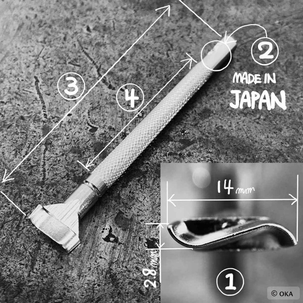 OKA est un fabricant Japonais passionné par le travail du cuir. Il fabrique des outils de haute qualité, agréables à utiliser et adaptés aux débutants comme aux confirmés.Les matoirs sur manche Ropes vous aide à créer des motifs de cordes ou cordages (voir exemples en photo 5). Ils peuvent aussi être utilisés pour dessiner des bordures.