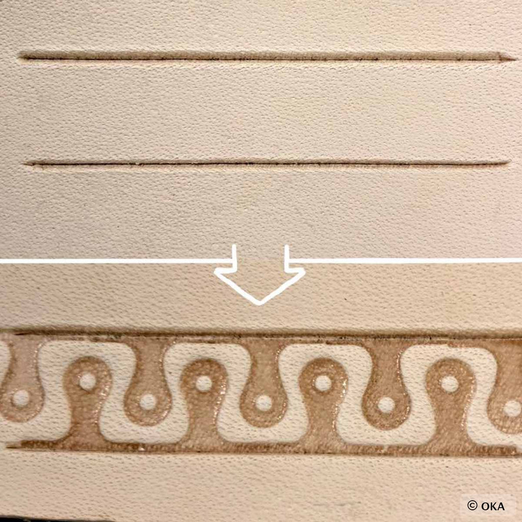 OKA est un fabricant Japonais passionné par le travail du cuir. Il fabrique des outils de haute qualité, agréables à utiliser et adaptés aux débutants comme aux confirmés.Les matoirs sur manche de la série Spécial (O) sont utilisés pour créer des motifs visuellement réalistes afin de décorer et sculpter votre cuir. Ils permettent de personnaliser votre projet (voir exemple en photo 5).