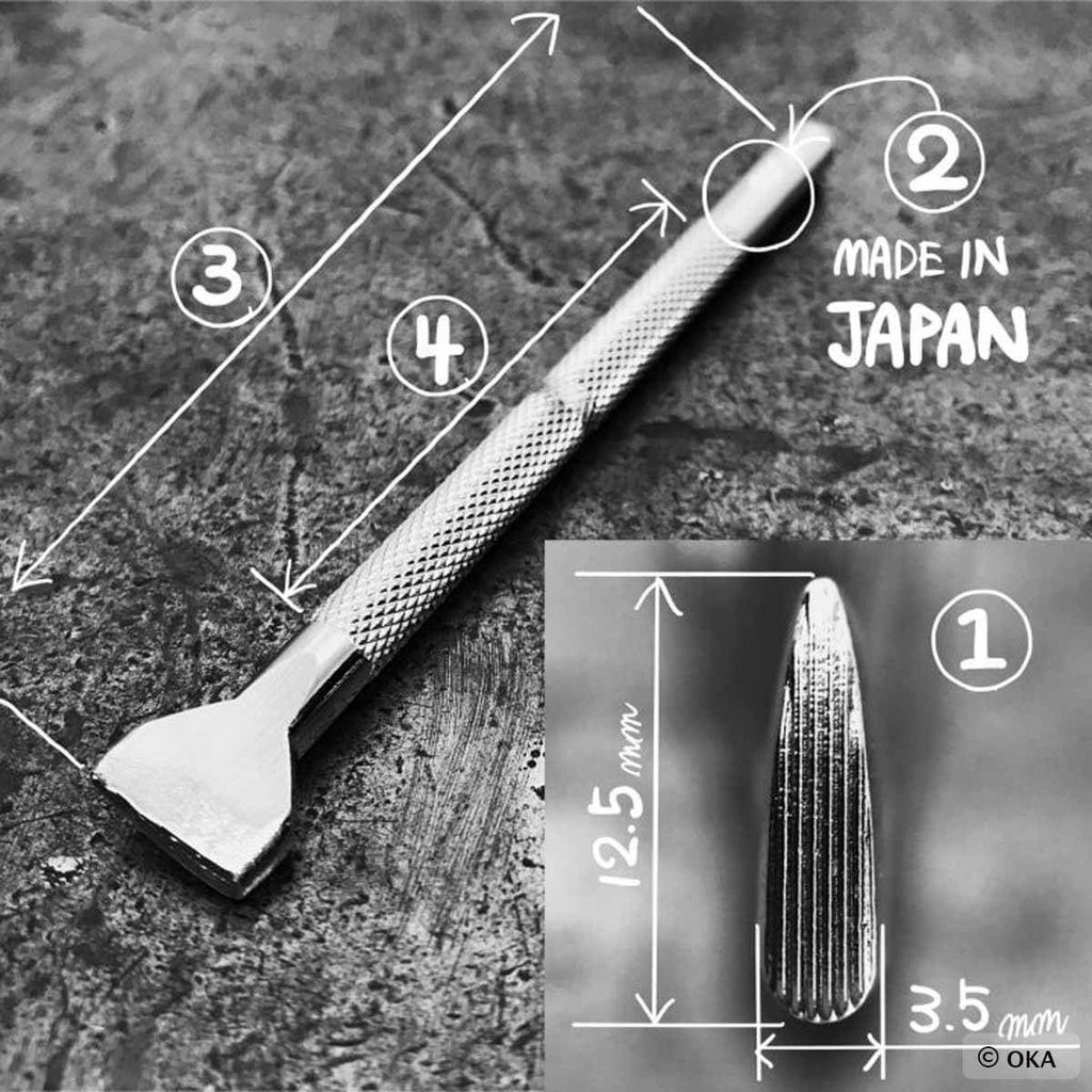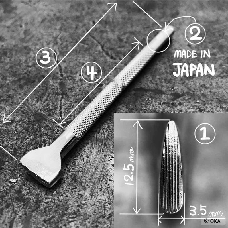 OKA est un fabricant Japonais passionné par le travail du cuir. Il fabrique des outils de haute qualité, agréables à utiliser et adaptés aux débutants comme aux confirmés.Les matoirs sur manche "Thumbprint" permettent de travailler les ombres, leur motif ressemble à une empreinte digitale. À la différence des matoirs "Pear Shader", ils sont en forme d'oblong et ont deux extrémités de tailles différentes qui sont toutes les deux utilisables. Ces matoirs sont très utilisés dans le repoussage style Sheridan.