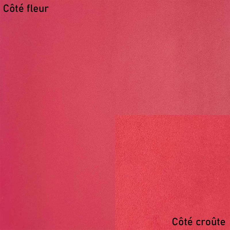 Découvrez la beauté naturelle du cuir rose framboise : souple, lisse et prêt à être travaillé pour donner vie à vos idées.