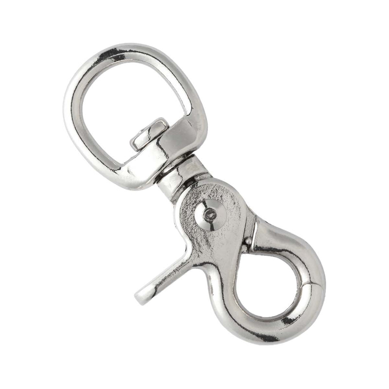 Mousqueton tournant à ouverture latérale vers l'extérieur.