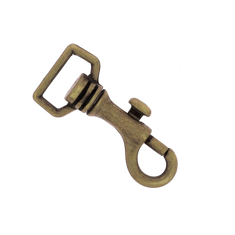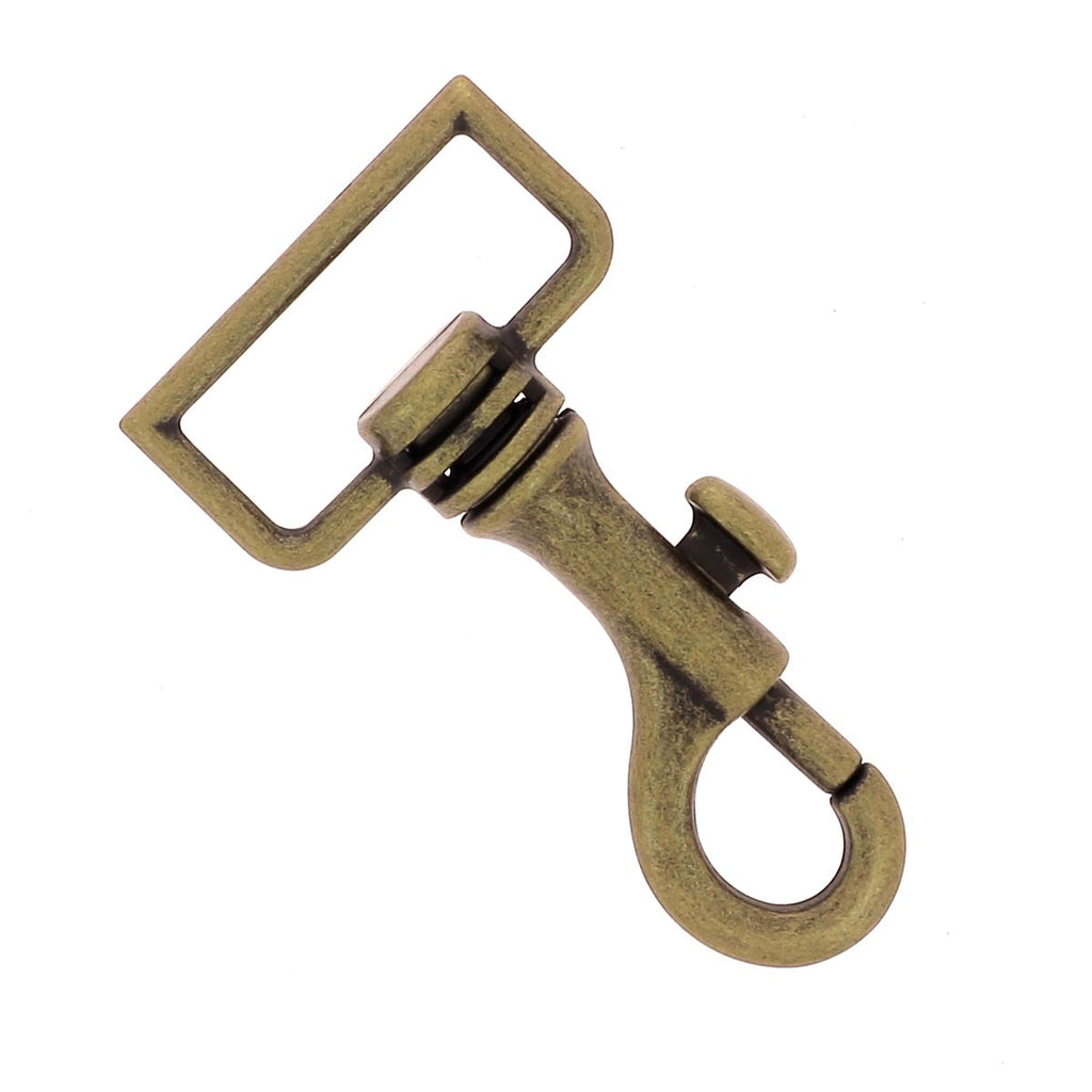 Mousqueton tournant à tirette pour une lanière en cuir.