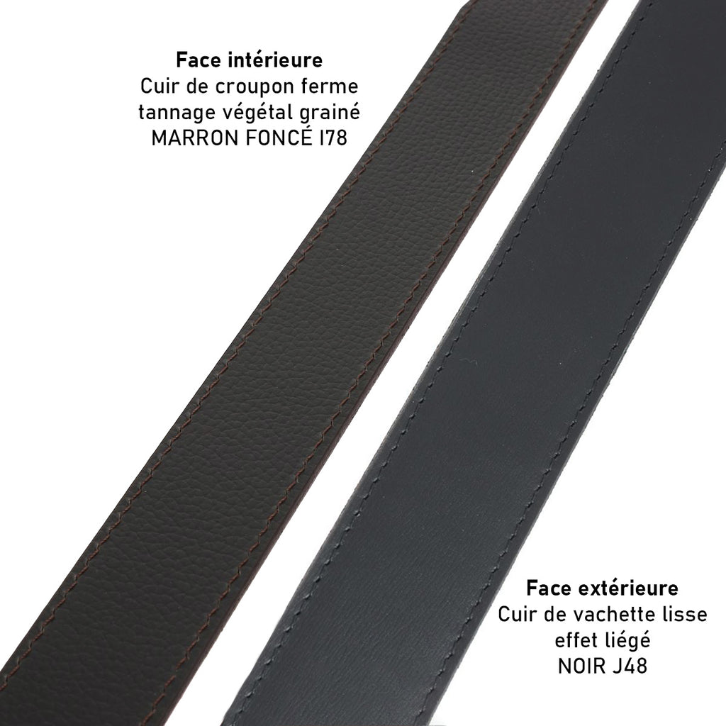 - Face extérieure : Noir J48 - Lisse, effet légèrement liégé - Tannage minéral