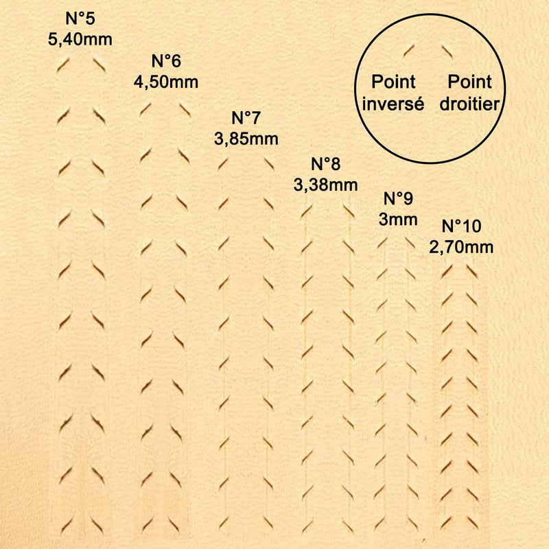 | Article en cuir | Épaisseur totale du cuir | Entraxe | Diamètre du fil |