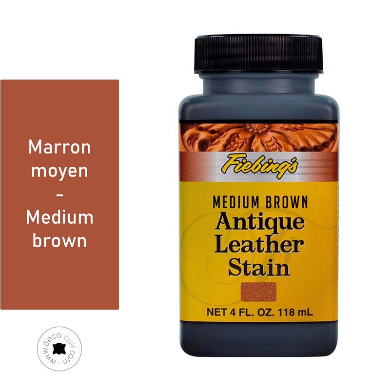 La patine Antique Leather Stain de Fiebing's est généralement utilisée comme finition après teinture. Elle donne à votre teinte un effet antique. Cette patine a été créée par Fiebing’s pour les écoles, les hôpitaux et autres institutions car elle est à base d'eau et à séchage rapide (sans danger - patine acrylique).