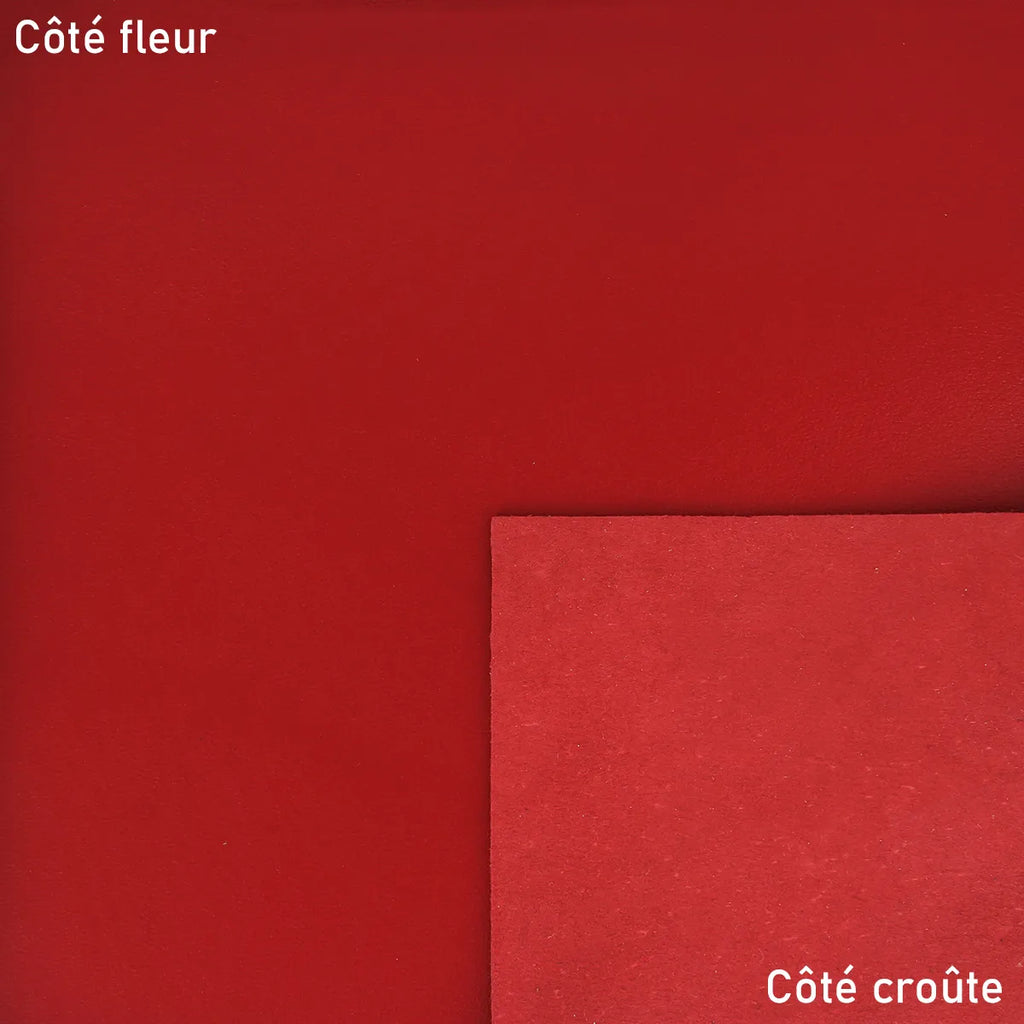 Tombez sous le charme de ce très joli cuir d'agneau nappa couleur rouge. Sa teinte vibrante et sa texture pleine fleur en font un cuir intemporel et raffiné. Souple et lisse, ce cuir est particulièrement apprécié pour la fabrication de maroquinerie, petite maroquinerie (porte-cartes, portefeuille...), vêtement, chausson, décoration...