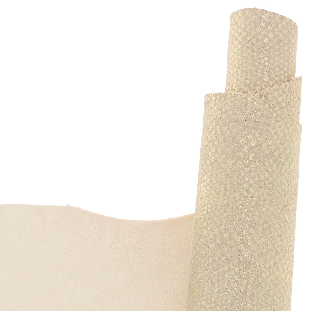 CUIR D’AGNEAU VELOURS FANTAISIE - IMITATION REPTILE BEIGE ET OR