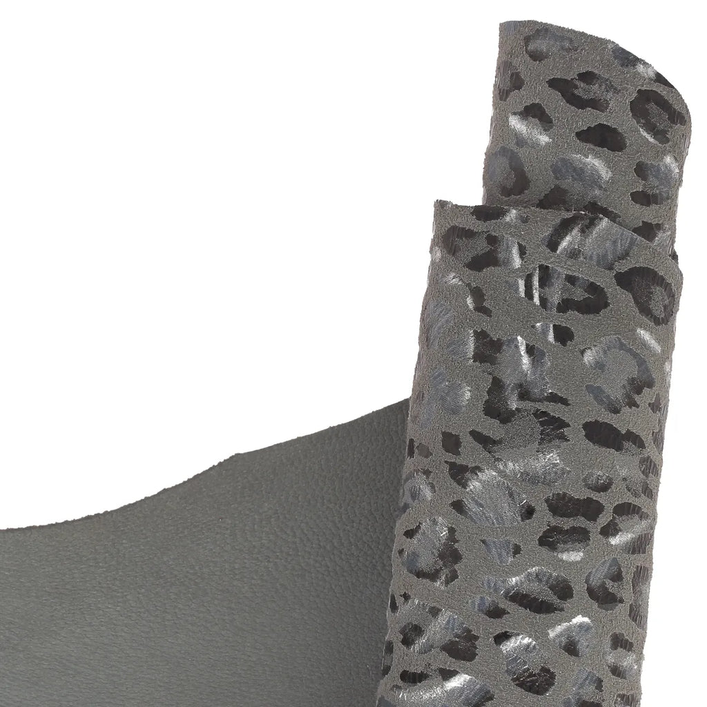 CUIR DE CHÈVRE FANTAISIE GRIS – IMPRIMÉ LÉOPARD