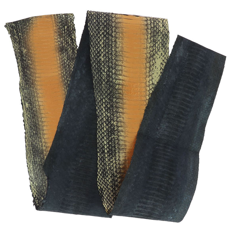Peau de cuir de serpent Élaphe dorsale NOIRE - ORPeau de cuir de serpent Élaphe dorsale NOIRE - OR