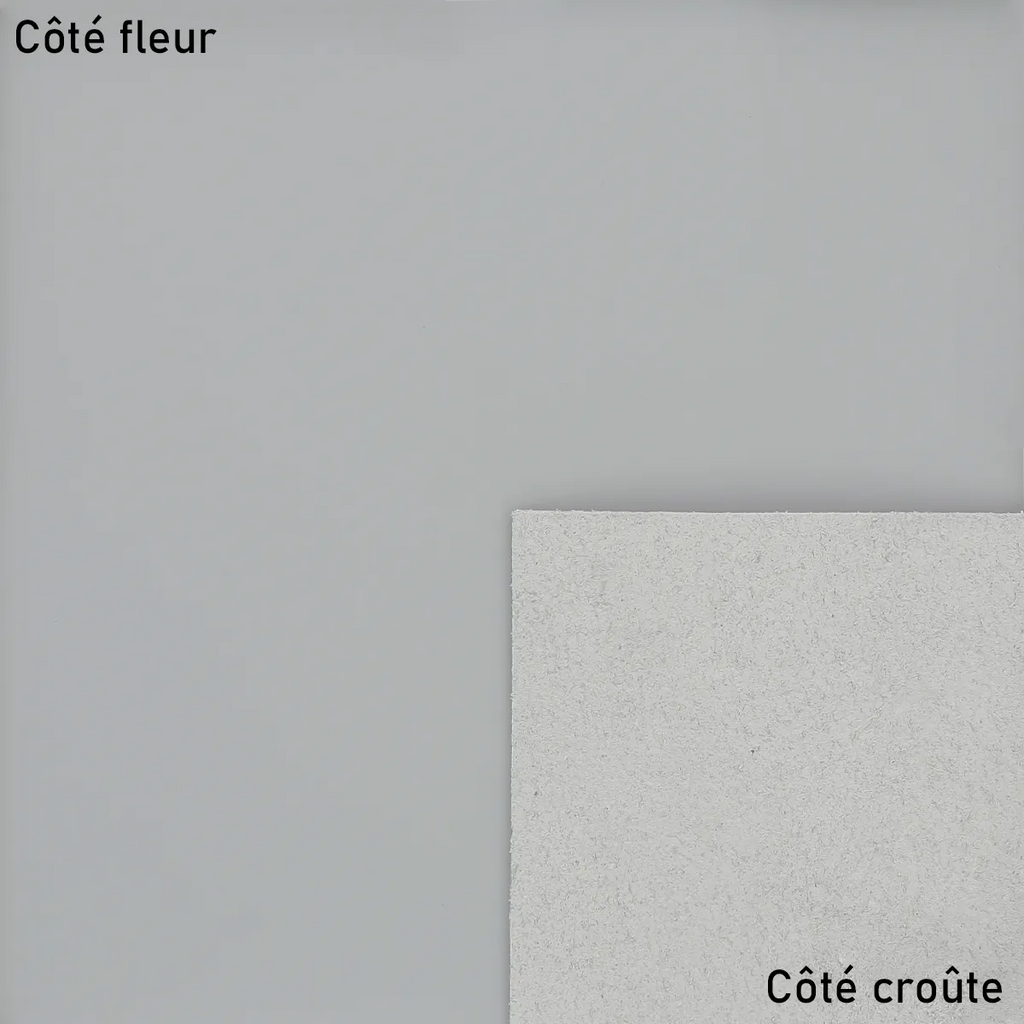 Ce cuir de vachette gris de la gamme Gommato se distingue par son effet gommé, qui lui confère un rendu visuel mat et un toucher doux et lisse. Malgré cette douceur au toucher, il conserve toute la robustesse et la fermeté de la vachette, ce qui en fait un matériau à la fois esthétique et résistant. Sa couleur gris classique le rend facile à associer avec d’autres tons et textures de cuir.