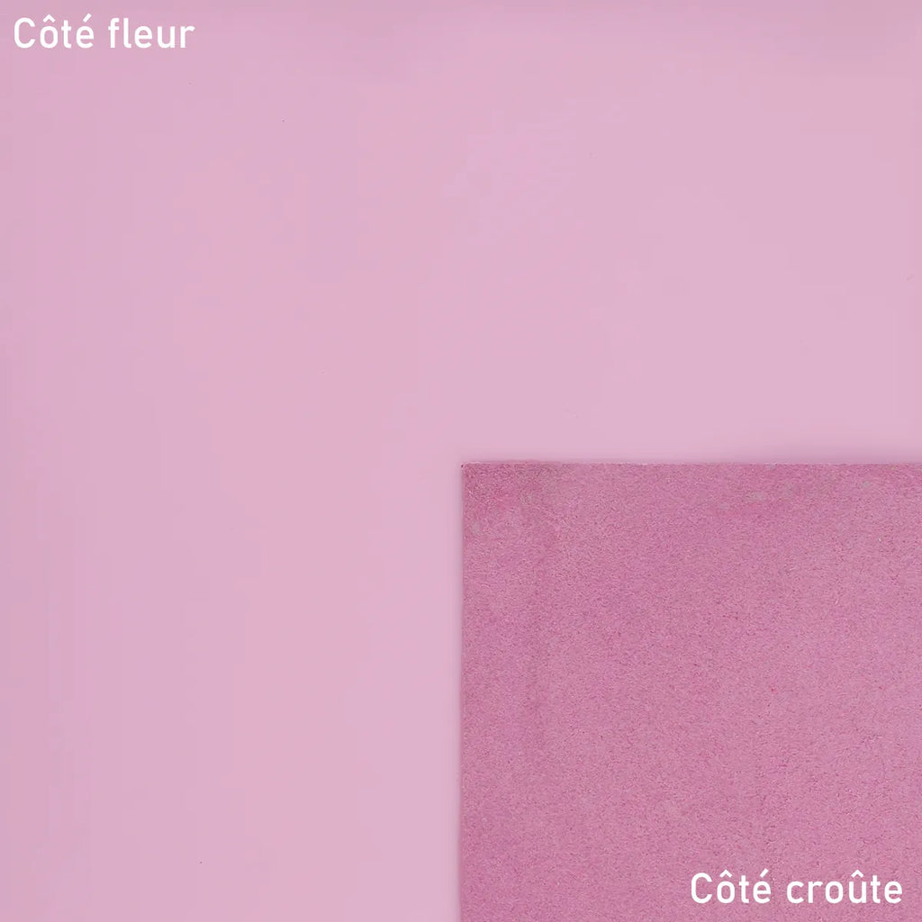 Ce cuir de vachette rose clair de la gamme Gommato plait par son effet gommé, qui lui offre un rendu visuel mat et un toucher doux et velouté. Sa teinte rose clair est à la fois douce et lumineuse. Ce cuir conserve toute la robustesse et la fermeté de la vachette, ce qui en fait un matériau à la fois esthétique et durable.