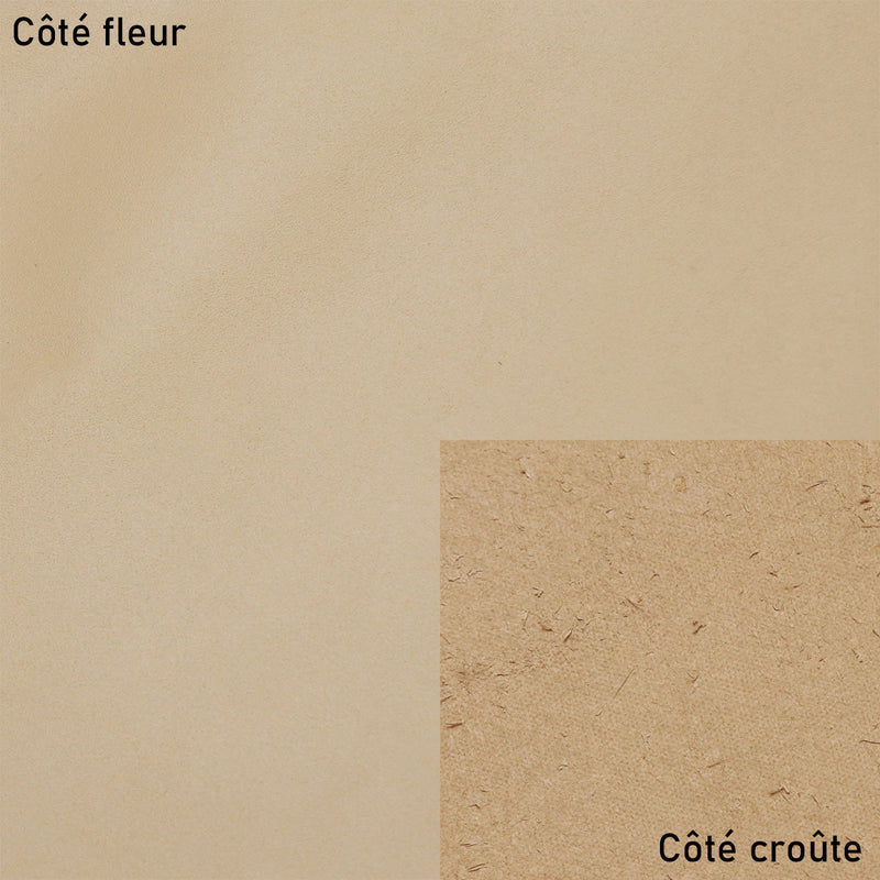 La teinte beige de ce cuir, à la fois douce et lumineuse, sublimera vos réalisations de maroquinerie en apportant de la chaleur et de la clarté à vos créations.