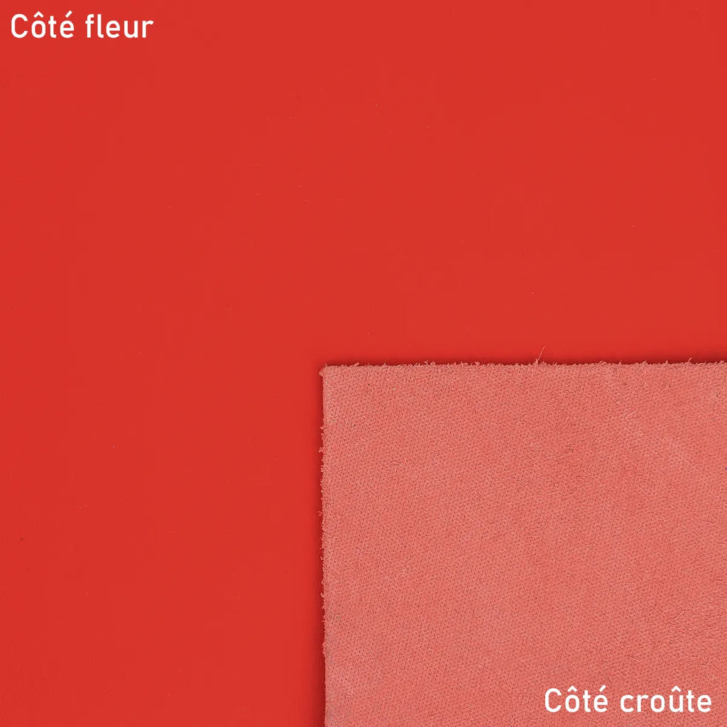 Imaginez, créez et sublimez vos créations avec ce cuir de vachette lisse couleur rouge mat. Une couleur à la fois chaude et lumineuse qui saura rehausser vos créations en toutes circonstances. Avec sa souplesse mi-souple mi-ferme et son épaisseur de 1,7 mm cela lui offre une belle tenue et une excellente résistance. Cette peau de cuir est idéale pour des créations à la fois élégantes et durables.
