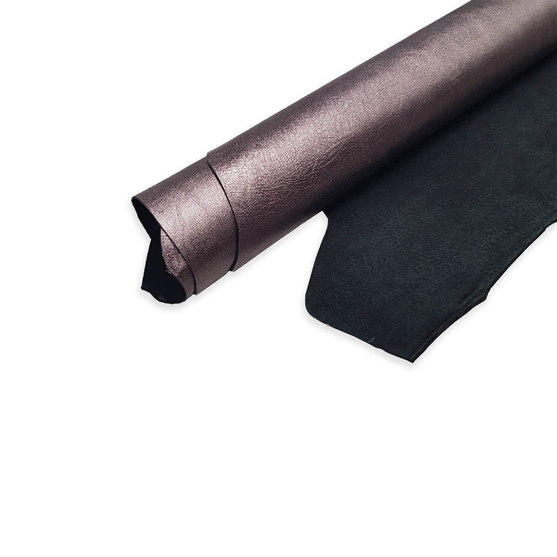 Cuir d’agneau fantaisie marron glacé métalliséCuir grain naturel et fin marron métallisé