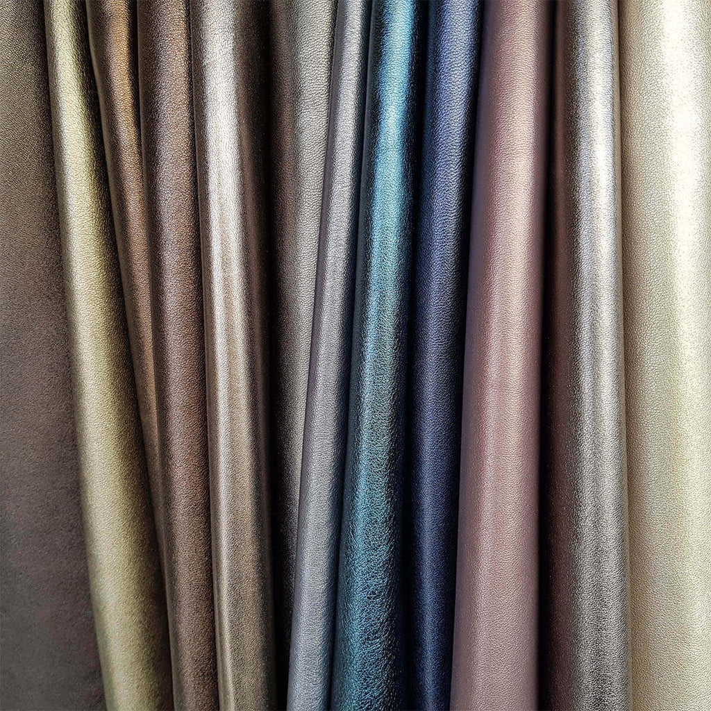 Cuir d’agneau vert lichen métalliséPeau de cuir vert métallisé pour créations modernes