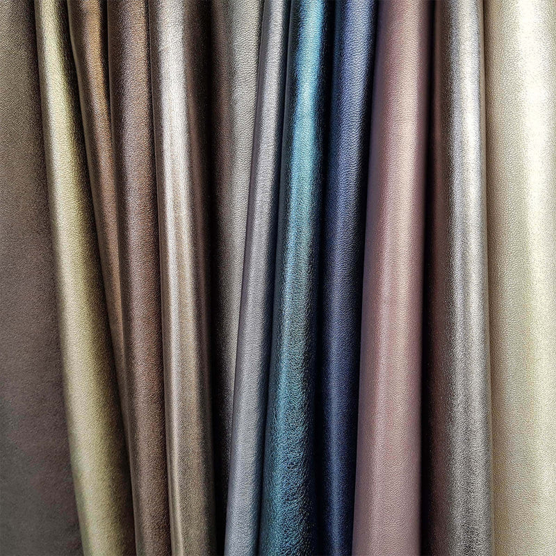 Cuir d’agneau fantaisie teinte or rose métalliséCuir minéral au grain fin finition métallisée