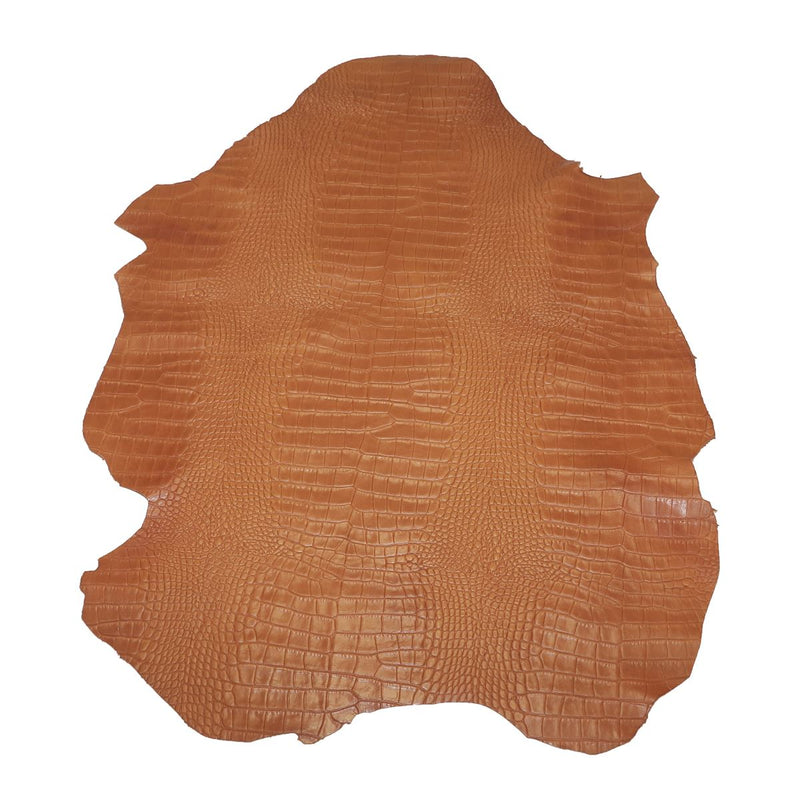 Peau entière de cuir de basane FRANCE imitation Crocodile - ANILINE - COGNAC BAF15 -de 0,60 à 0,69 m²