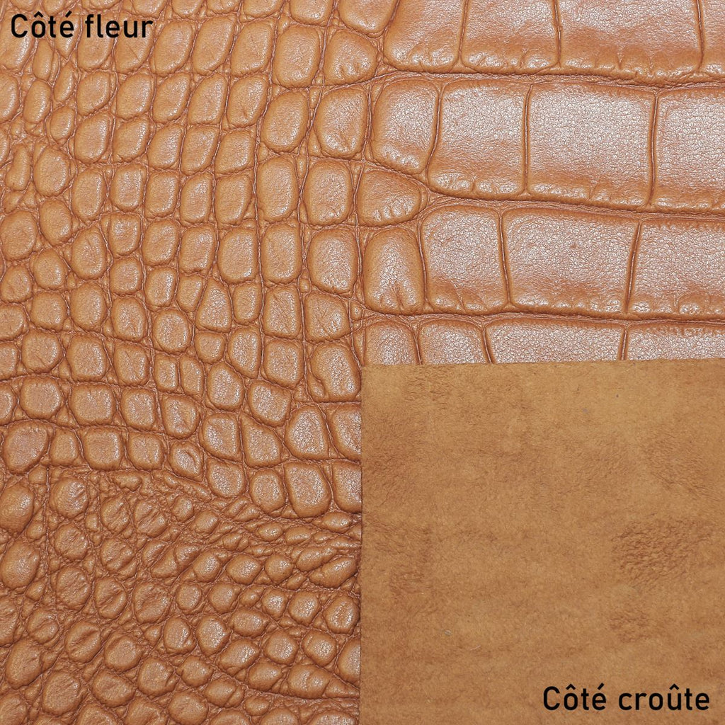 Cette peau entière de cuir de basane de couleur cognac, idéale pour toutes vos créations en cuir. Sa finition imitation crocodile style caïman est marquée par gaufrage sur le cuir basane lisse. Cette peau de très bonne qualité est résistante et provient d'une mégisserie française.