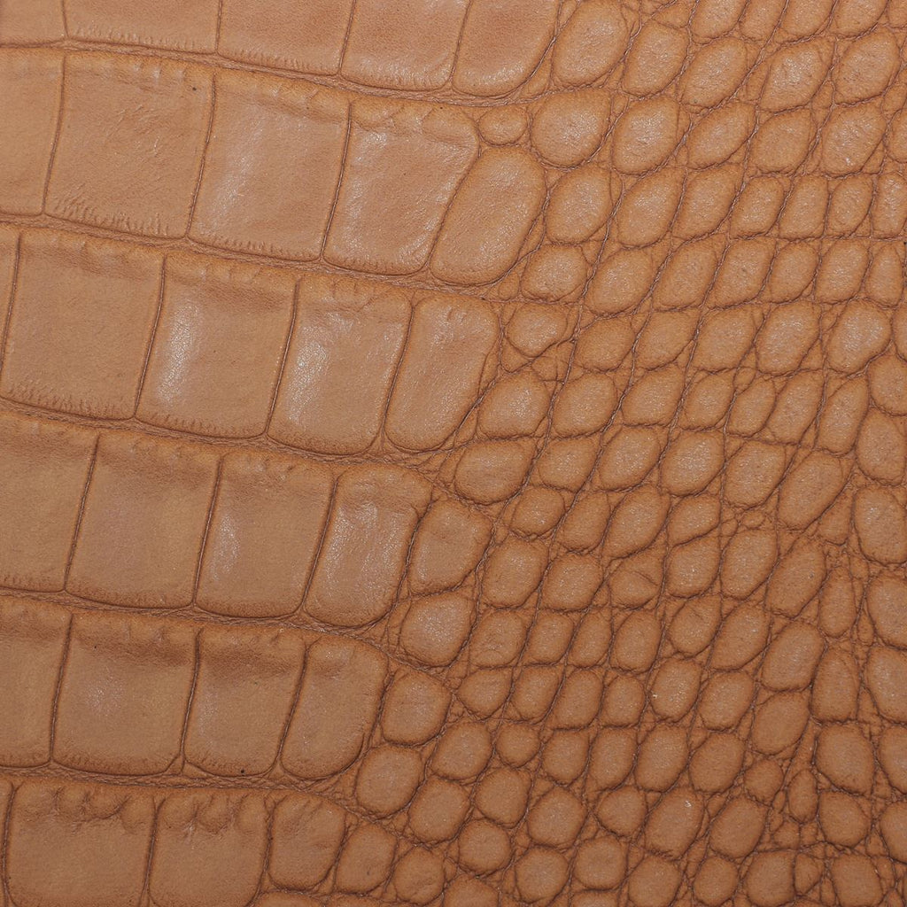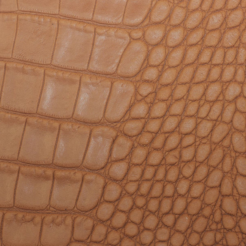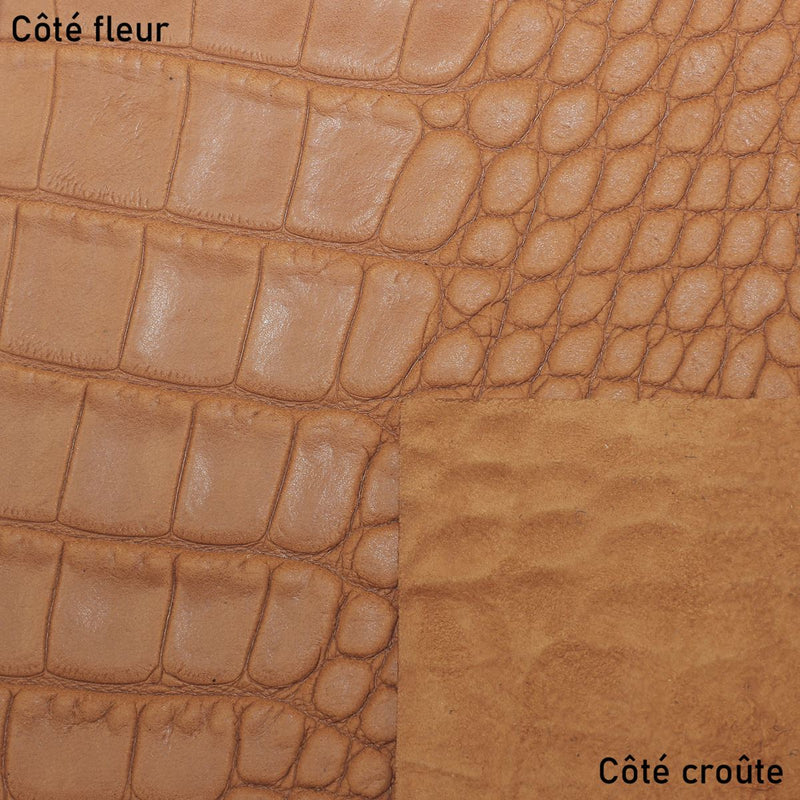 Cette peau entière de cuir de basane nubuck de couleur cognac, idéale pour toutes vos créations en cuir. Sa finition imitation crocodile style caïman est marquée par gaufrage sur le cuir basane lisse. Cette peau de très bonne qualité est résistante et provient d'une mégisserie française.